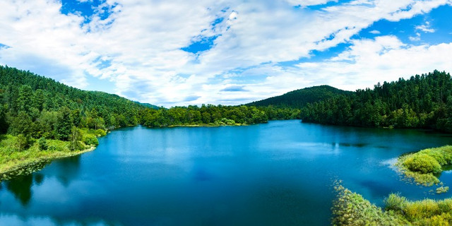 小天池在长白瀑布以北3公里处,很静谧,没有大天池的喧嚣,可以定下心来,静静地品味其中的美,树木在水中倒影,就是那点睛的一笔。