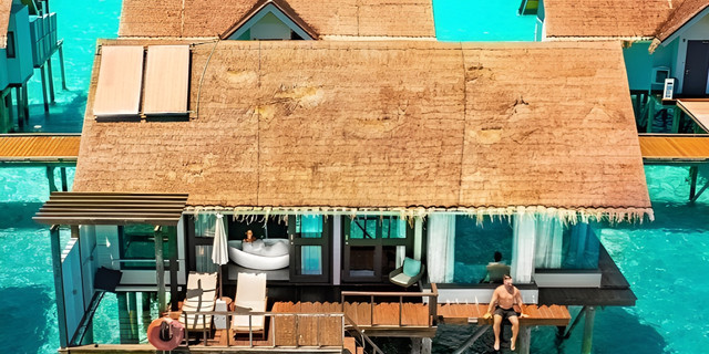 在享受了一顿美味早餐之后,你将乘坐水上飞机,俯瞰马累北环礁,从不同角度欣赏这座印度洋上的绿洲花园。晚上,你可以去酒店的露天酒吧L'Iru,享受美味,聆听音乐,仰望满天星斗的夜空。