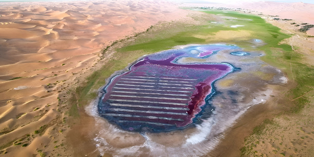 这里与沙坡头相邻,被称为“沙坡头的后花园”,却比沙坡头苍茫,草原、沙漠、湖水形成天然美景,空气清新,牛羊成群,与洁白的蒙古包融合成一幅迷人的画卷。晨观沙海日出,暮赏大漠孤烟,蓝天、白云、草场、牛羊和热情的草原牧民,让人感受到一种与世隔绝,超然脱俗的畅快。