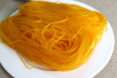 9、煮好的面要过凉水,双手轻轻搓洗,以洗掉多余的淀粉使面条变得清爽劲道装入碗中。