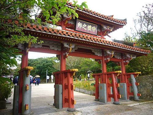 首里城位于那霸市东部,坐城市高架铁路到终点的首里站徒步10分钟就可以到首里城公园。或许是应了中国老话叫人往高处走,要想见到真正的城,还要再爬上一段台阶。路上看到的城墙门楼,多少感觉区别于日本其他的城,有很浓郁的中国建筑味道了。门楼基本都以红色为主,中间还会有牌匾写字。第一个映入眼帘的是“守礼之邦”四个大字,日本人一定不解其中之缘由,而到此的中国人看到这个牌匾是否会联想到,这首里城的首里是否就是谐音自“守礼”二字呢?