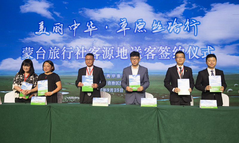 内蒙古旅游发展委员会与台湾旅游品质保障协会、台北市旅行商业同业公会、高雄市旅行商业同业公会签署《蒙台旅游交流合作备忘录》。随后,举行了内蒙古旅游台湾营销推广展示中心揭牌仪式。据了解,为进一步加强与台湾旅游业界的交流,内蒙古自治区旅游发展委员会在台湾设立内蒙古旅游营销推广展示中心,作为对当地游客的营销展示和业内推广平台,全方位展示内蒙古旅游资源和旅游产品,为台湾游客提供更加便捷的旅游咨询和服务。