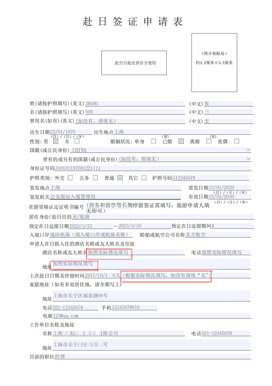 | 申请表格 | ★签证申请表【原件】 | 1、用黑色水笔按照样本手写中文填写,无需粘贴照片; 2、正反面打印在1张A4纸上; | |