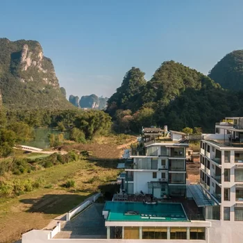 阳朔在水一方酒店坐落在遇龙河景区风景最美地段,前望遇龙河,后见月亮山;蝴蝶泉、月亮山、聚龙潭等景区都散落在周边,离工农桥及大榕树景区步行约十余分钟即可到达;从西街及高田高速出入口到达酒店约10分钟车程;在这里,身边处处皆是优美风景,让您足不出户就可以享受到最美的阳朔山水美景,呼吸到新鲜空气,置身于天然氧吧之中。酒店配有客用餐厅,提倡健康生态饮食,所用食材皆精心挑选,烹饪方法皆清淡少油,让每位客人体验到阳朔健康饮食之美!美景养眼,美食养生。是您休闲度假、修身养性的上佳选择!正所谓“绝美风景,在水一方”。
