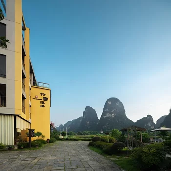 酒店位于工农桥附近鸡窝渡村,近大榕树景区、月亮山景区、遇龙河景区,出游便利。竹窗溪语取自明末高僧莲池大师《竹窗随笔》“临窗邀石听溪语,凭槛对月沐竹风”。在天地之间觅得一方安详,听风雨,听山语,听禅语。开窗是遇龙河畔,推门有田园山色,晨辉晚霞、蛙声鸟鸣、翠竹白鹭,空灵深远,欲说还休。酒店阳台或日出、或晚霞或烟雨或蓝天白云之际所拍摄出的画面都为惊人之作,被评为阳朔上佳摄影地之一。“竹窗溪语”——山水禅生活的首倡者。主张将衣、食、住、行、修及生活美学体验融入休闲度假方案中,主张在山水间感悟中国智慧,传播自然本真的生活方式与生活艺术。已成功推出“山水禅生活“游学系列【旅游体验定制、团队建设】:禅舞一味、山水茶修、正念禅修、书画研修、太极、瑜伽等系列度假产品。酒店配有田园观光电梯,原创环保全竹家具,澳洲檀香环保洗漱用品,美国科勒卫浴,阳光餐厅、顶楼全景观茶书院(会议室),360度景观私家庭院、泳池等,优美景色+驻店摄影师,只为让您在山水禅中悟生活,心生欢喜,久驻不厌。