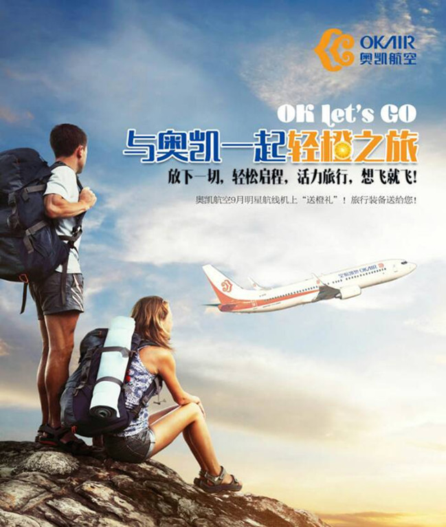 关注奥凯航空微信公众号,参与幸运大转盘活动,更有惊喜等着您!放下一切,轻松启程,活力旅行,想飞就飞!OK Let's Go
