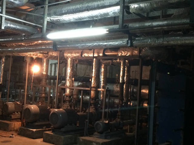 天然泉眼取水,南、北蓄水池的泉水分别需要流经1047米与671米的主管道涌入调节池,再经4012米的复杂管线方可进驻各个机房。