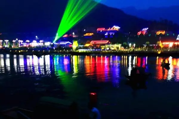 在夜幕降临时,整个山谷欢歌四起,霓虹闪烁,人们欣赏着音乐,品尝着美味,感受着大山里的凉意,犹如世外桃源。