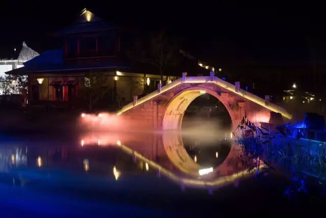 灵山小镇·拈花湾以月寄情,在拈花塔下可以虔诚之心祈福拜月。霓裳羽衣溢彩流光,品味传统,值此佳节共婵娟。