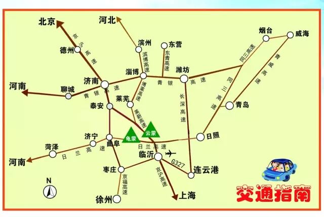 自驾指南:G2、G3、G15转G1511日兰高速蒙山(平邑东)出口左转至蒙山旅游专线。
