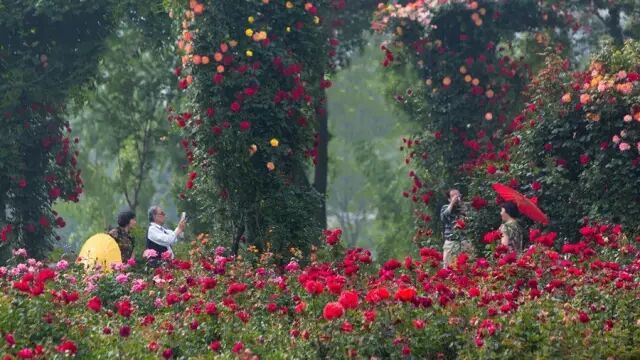 盛泽湖位于相城区东北部,与阳澄湖相通,月季园就坐落在美丽的盛泽湖畔。芬芳的月季园与美丽的盛泽湖裙带相依,在保留原有生态湿地形态的基础上,种植了藤木月季、地被月季、丰花月季、微型月季、树状月季等品种一百多万株,是长三角地区规模最大的月季主题公园。从河南引进的树状月季离地面比较高,枝干挺拔,色香俱浓,在月季园中更是起到了画龙点睛的美化功效。