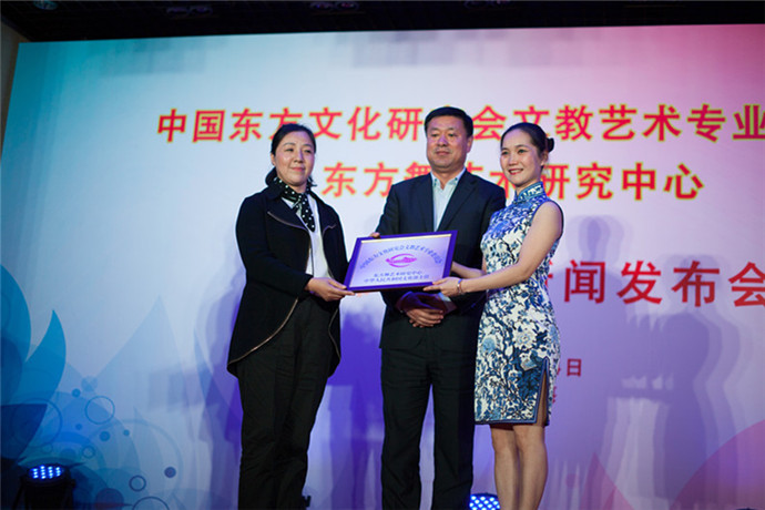 中国东方文化研究会文教艺术专业委员会副秘书长王喜山先生为中国东方文化研究会文教艺术专业委员会东方舞艺术研究中心授牌。