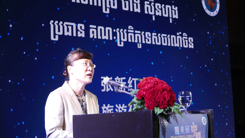 中国旅游代表团团长张新红在致辞中表示,中柬全面战略合作伙伴关系的稳步发展,推动旅游交流合作持续向好。旅游作为人文交流合作的重要内容,正不断丰富和拓展着中柬全面战略合作伙伴关系的内涵。近年来中国旅游发展势头良好,冰雪旅游等专项旅游得到迅猛发展,希望借此次活动为两国业界搭建务实合作平台,中方愿同柬方共同努力,拓展旅游合作深度与广度,推动双向往来达到新的高度。