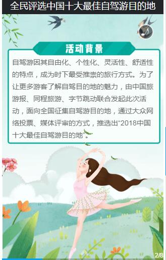 中国旅游报联合同程旅游、字节跳动等单位,强势发起2018全民评选中国十大最佳自驾游目的地活动。