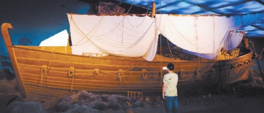 ▲5月14日,等比例还原的“黑石号”沉船在长沙铜官窑博物馆展出。