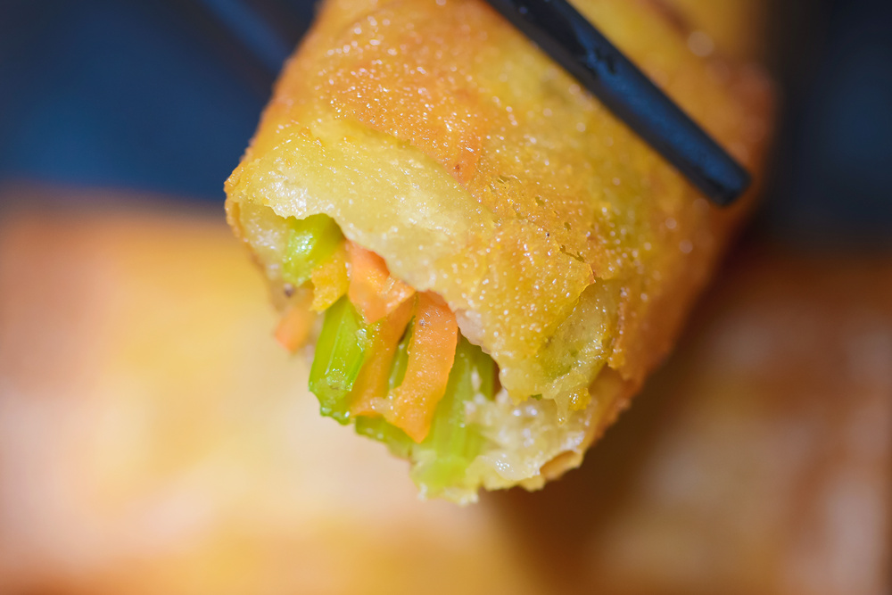 电视机前看联欢晚会,大人则趁此空档聊聊家常话题,这时候,一盘金灿灿黄澄澄冒着油光的春卷上桌,即使已经吃得饱饱,总还能再吃下不少。