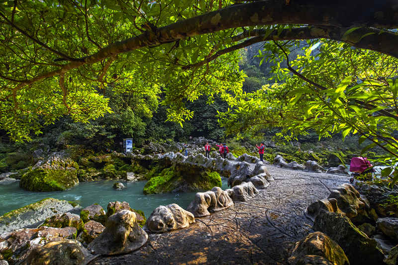 黔南森林覆盖率达63%,冬无严寒、夏无酷暑,空气清新、凉爽舒适,负氧离子高达每立方厘米10万个以上,是天然的大公园、大空调、大氧吧,州内拥有世界级、国家级风景名胜区32处,国家级A级景区44处,更有被习近平总书记命名为“中国天眼”并推介“到贵州一定要到天眼看看”的世界唯一的500米口径球面射电望远镜。黔南是一个集观光、休闲、度假、养生为一体的令人向往的首选目的地。
