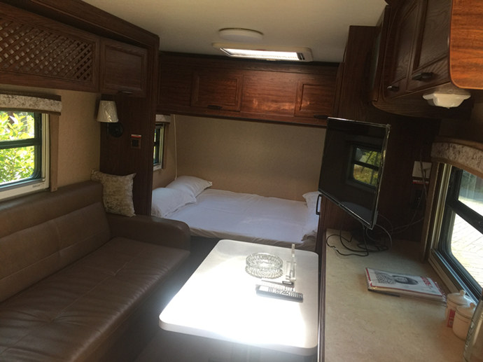 888房车的沙发改造后可睡1-2人,所以床铺及沙发共可供3-4人休息。
