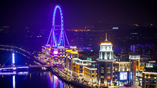 "幻彩摩天轮"的特色是,整个轮体构筑于4层建筑物之上。另外,轮体还将安装LED灯,有渐变、追逐、变色、五彩等灯效转变,因此得名"幻彩摩天轮"。高点:离地108米。