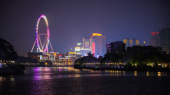 幻彩摩天轮地处兴中广场摩天城,中山市标志性建筑。总高108米,外挂36个透明座舱。每舱可容游客6-8人,可同时容纳288位乘客,舱内配置了冷暖空调,每小时将可容纳近800人“空中”旋转观看中山都市美景。