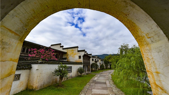 穿过石牌坊,走上数十步石阶,跨入徽州古民居的门楼,映入眼帘的屏风上刻着《桃花源记》全文。停顿片刻,读罢文章,记者低头走在窄小静谧的石径上,回味着文中的句词,不觉跨入中门,一抬眼,却是另一番景象。
