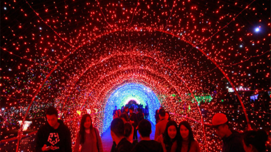 无论是海豚、水母、帆船等海洋元素,还是美人鱼、哆啦A梦等童话元素,或是孔雀开屏、大鹏展翅、天鹅等动物元素,再或者时空隧道、心形廊道、情侣求婚等浪漫元素,本届灯光节都应有尽有,造型独特丰富。夜幕降临,灯光节点亮了夜空,于五彩斑斓之中,尽情嬉戏玩耍、拍照留念。