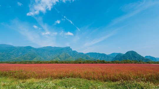 据传九龙争饮源自神农氏采药酿酒时,召来了九条苍龙全喝醉了,整个身子醉卧在这里受日月之精华,化作了“四周山纵横,中间一地坪,绿树满坡生,水接天坑渗”的神妙景观。而九牛之说却又印证着“薛刚反唐”的故事,唐中宗被母后武则天贬为房州卢陵王,他做梦都想重登帝位。李显一日在梦中得神农老祖点化,特命薛刚为帅,在大九湖屯兵、练兵,一举推翻武周王朝,恢复了唐号,而李显再次登上中宗皇帝的宝座。大九湖因自承袭下来1-9个字号及帅字号(亦称“挂字号”)、卸甲套、马鞍山、黑水河、九灯河、碉堡坪等十几个村落,至今还保留着娘娘坟、点将台、小营盘、擂鼓台、鸾英寨、八王寨、古盐道等历史遗迹。没想到如今安静悠闲如世外桃源般的大九湖,却也有过烽火连天,号角激荡的岁月,只不过旌旗湮没,风烟散尽,留下些神话般的传说罢了。春之清凉寨 大九湖有趣的是扎向平川的山头,看似九座山峰,实则酷似九条苍龙在争饮甘醇,龙头、龙须、龙身、龙尾无不形象逼真活灵活现。民间传说那是倒拖在湖中的九条牛尾,山头恰似牛腿、牛屁股哩。时下仍流传着“四川过来九条牛,走到九湖未回头,何时识得其中味,不出天子出诸侯”的歌谣。