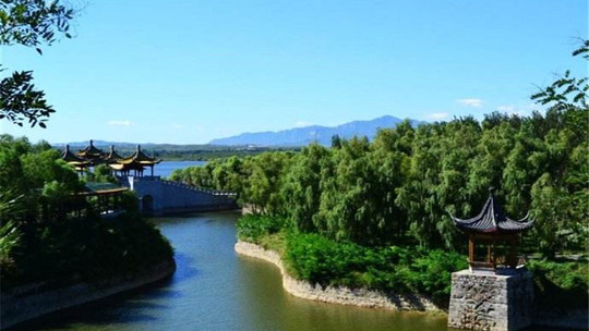 岐山湖景区古色古香,廊、亭、楼、阁、山石、拱桥、水榭、荷塘无一不全,一步一景,一景一梦。曲折蜿蜒的木栈桥,凌驾在浩浩汤汤的水面上。迎面是清新的湖风,脚下是涌动的湖水,身侧是苍翠的禅林,远处是浮动的舟、起伏的山,心旷神怡,无我两忘,完全地融入了这无边的景致里。
