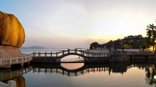 菽庄花园的特色就是藏海与借景将海藏在小小的园中,同时利用四周的景色,围地砌阶,造桥建亭,使原本十分狭小的海湾,变成涵纳大海,颇具层次的海滨花园。