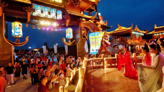 船歌岛景区是传统文化与现代休闲的完美结合。西游文化的精髓在“猪八戒背媳妇互动主题小镇”得以传承,小镇依托《西游记》的奇幻世界,巧妙融入科技、文创、休闲、美食、文化、亲子、娱乐、互动等多元化元素,缔造了一处集创意美食、沉浸演艺、休闲娱乐、互动体验、文化创意、科技亮化于一体的沉浸式西游文化体验地。