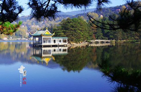 庐山风景区位于九江市南,北濒长江,东接鄱阳湖。它与黄山、雁荡山被称为是五岳中的三山。山有魂,水有魄,山连水接,魂魄相依。秀丽的山光水色交融映衬,美不胜收,于是就有了“匡庐奇秀甲天下”的美称。