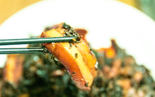 这道菜比较素雅,冬笋和香菇,都是大自然对青山绿水的慷慨馈赠,无需花哨手法,将两者放油锅中跳舞,就是一道绝顶美味。大山与白玉的组合中,冬笋的爽脆伴着香菇的肥厚香醇,在口齿间跳起了欢快的舞蹈,脆生生的口感间还奇妙地保有弹牙的嚼劲。