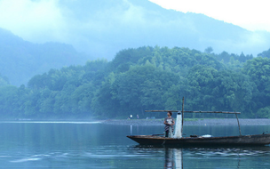 清晨,几艘渔船零星地点缀着,轻凌于山间的薄雾倒影在碧波之上,朦朦胧胧,若隐若现,就如一缕轻烟袅袅升入天空,又沉进水中,感觉近在咫尺,却又邈若河山,这是诗歌,是画卷,是梦境。