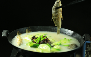 古堰画乡是丽水莲都知名的4A景区,风景如画,游人如织。很多人都知道,那里的河鲜也是极好的。莲都人喜欢周末开车去大港头吃鱼,游客们也喜欢找家临江边的小店,边看风景边喝鱼汤。 世代住在江边的莲都渔民炼就一双火眼金睛,能捕到一些难得的美味。石斑、黄刺丁、鲶鱼、桂鱼、马口…….莲都的渔民一直喜欢以浓汤火锅的方式烧制,鱼汤鲜得叫人停不下嘴。喝碗鱼汤补补钙,也幻想自己有一天独钓寒江雪,过一天渔民的生活。