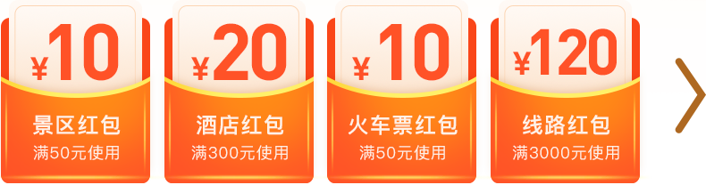 2、红包使用门槛: ①景点门票10元红包:满50减10元;