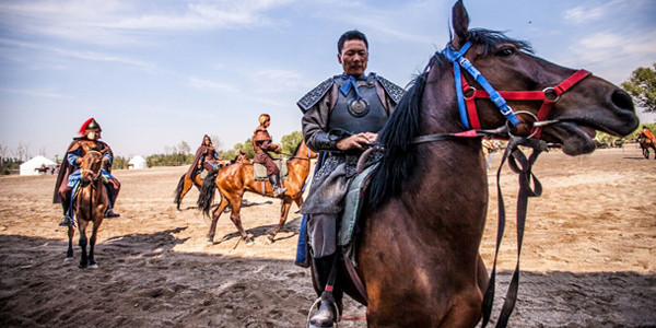 西夏风情园大型实景马战演出《烽火西夏》是景区斥巨资打造的户外真人实景演艺,每场演出参演演员达到80多人,马匹30多匹,演出场面壮观。本场演出还原了历史上西夏与辽之间著名的战役——河曲之战。西夏立国初期,政局未稳,与中原北宋发生了三川口、好水川与定川寨战役后,后与北宋议和,双方建立了榷市,开始友好发展。而西夏与辽国双方本来一直交好,互相通婚以保持友好关系。因为元昊煽动、引诱了辽国统治下的山南党项各部及呆儿族叛辽归夏,夏辽两国的关系激化,爆发这场著名的河曲之战。