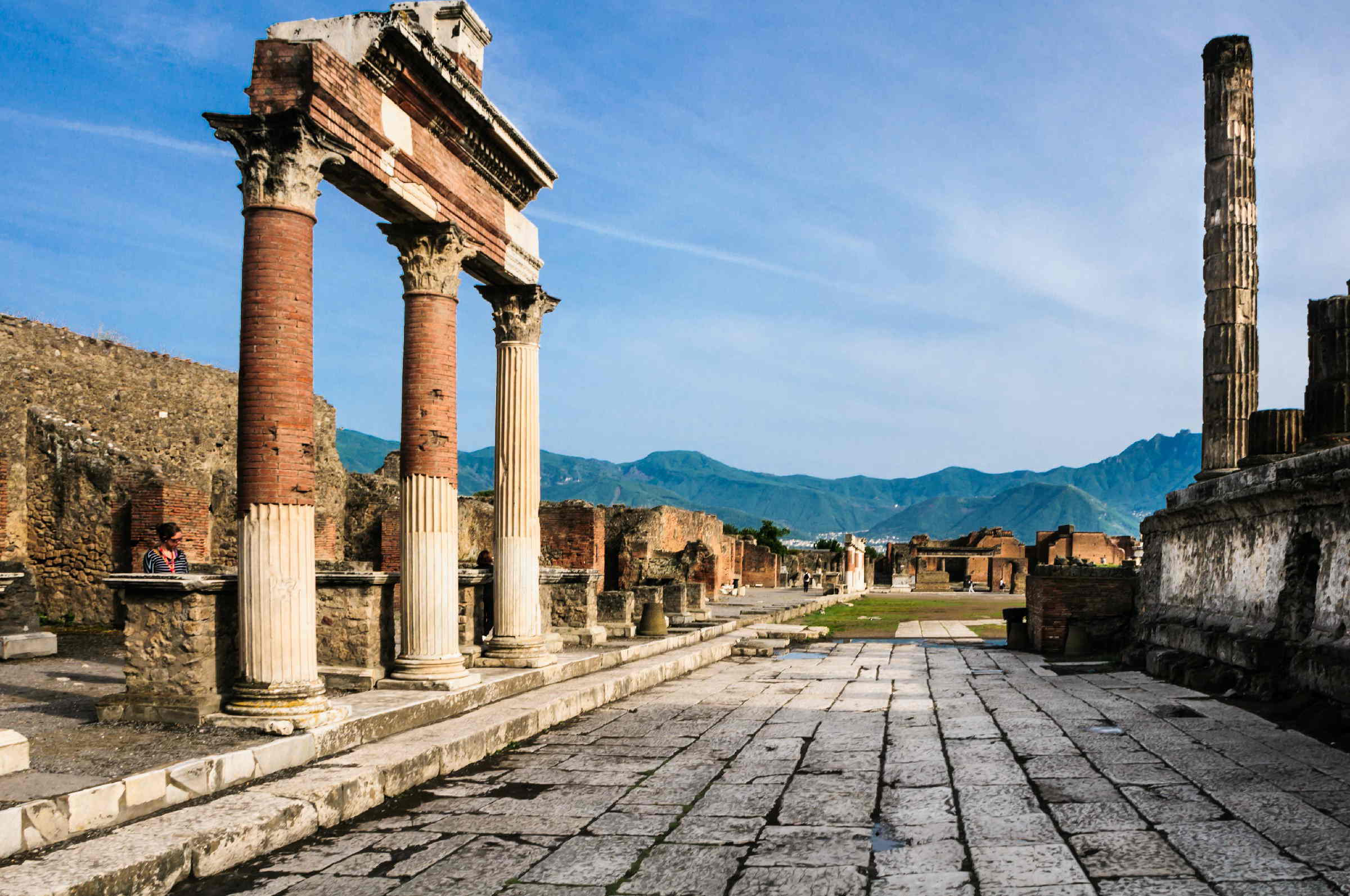公元79年8月24日维苏威火山的爆发,吞没了两个繁盛的罗马城市:庞贝和赫库兰尼姆以及那个地区的许多富家别墅。从18世纪中叶始,被掩埋的一切都逐渐挖掘出来并向公众公开开放。庞贝商业城的广阔,与规模不大却保存完好的赫库兰尼姆假日胜地相得益彰,而托雷安农齐亚塔的奥普隆蒂斯别墅的壮丽壁画,呈现给我们一幅早期罗马帝国富裕的市民生活方式的生动画面。