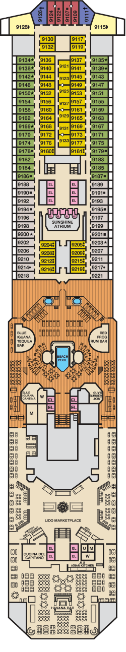 丽都市场卡布塔诺厨房吉吉亚洲厨房盖伊汉堡蓝色鬣蜥船长比萨龙舌兰酒吧哈瓦那酒吧红袖朗姆酒吧海滩游泳池