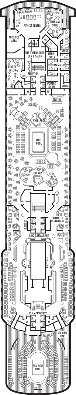 丽都餐厅卡纳莱托餐厅露台烧烤丽都酒吧海景酒吧健身中心丽都泳池海景泳池乒乓球巨型国际象棋室泳池按摩浴缸温室水疗中心沙龙桑拿