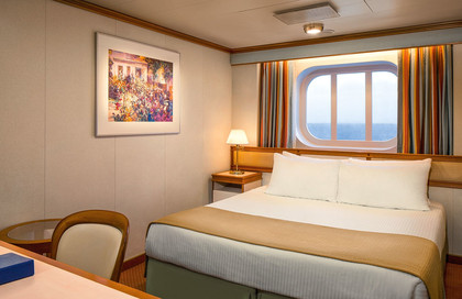 ·设施:位于甲板中段;客舱内有两张单人床,可转换成一张大号床,衣柜的空间大,带淋浴的私人浴室,有抽屉的办公桌。每个客舱有专属的电视,恒温控制空调,冰箱,个人保险箱,24小时客房服务。 一些...