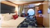 一张下部有储物空间的双人大床,干湿分明的浴室和洗手间,有浴缸和淋浴。液晶电视、冰箱、保险箱、iPod音乐基座、吹风机、电话、空调,少量房间设有下拉床或沙发床以容纳更多游客。 有无法打开的一个带座位大圆窗欣赏海景。