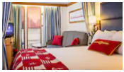 位于甲板后端;一张双人大床,干湿分明的浴室和洗手间,有浴缸和淋浴。液晶电视、冰箱、保险箱、iPod音乐基座、吹风机、电话、空调,少量房间设有下拉床或沙发床以容纳更多游客。 落地窗式玻璃门可以通往私人阳台。