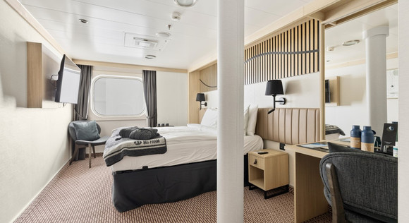 上层甲板客舱(5层)| 窗口(部分视野受限)| 提供冰箱 大床(可选双床)| 部分客房配有沙发床 | 应要求提供浴袍和拖鞋 | 最多可容纳 4 人