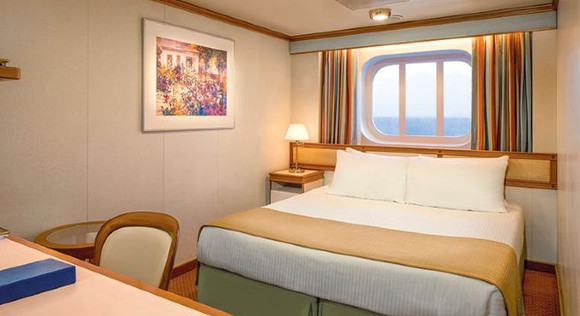 ·设施:位于甲板前段;房间配有海景窗户,配有两张单人床(可转换成一张大床),部分房间有下拉床以供第三四位客人入住。带有淋浴的浴室,洗发水,护发素,润肤露,100%埃及棉床单,卫星电视,冰箱...