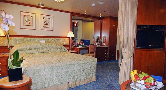 ·设施:位于甲板后段;房间配有两张单人床(可合并成一张大床),沙发床以供第三位客人入住。房间配有超大私人阳台,独立客厅,冰箱以及小型调酒吧,衣帽间,带有浴缸和淋浴的浴室,洗发水,护发素,润...