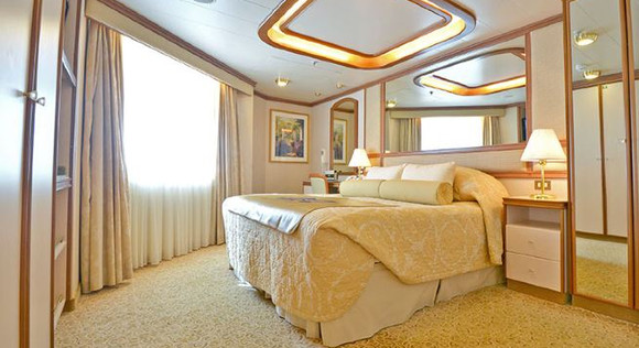 ·设施:位于甲板中段;房间配有两张单人床(可合并成一张大床),沙发床以供第三位客人入住。房间配有超大私人阳台,独立客厅,冰箱以及小型调酒吧,衣帽间,带有浴缸和淋浴的浴室,洗发水,护发素,润...