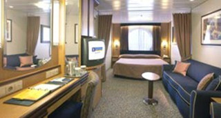 所有舱房和套房都配有私人浴室、梳妆区、吹风机、电视机、收音机和电话。两张单人床,可转化为大床