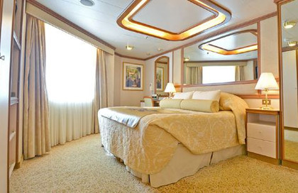 ·设施:位于甲板中段;房间配有两张单人床(可合并成一张大床),100%埃及棉床单,可选枕头,沙发床(以供第三位客人入住,部分舱房可入住第四人)。落地窗直达私人阳台,房间面积包含阳台面积。独...