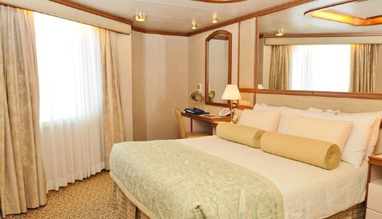·设施:位于甲板后段;房间配有两张单人床(可合并成一张大床),100%埃及棉床单,可选枕头,沙发床(以供第三四位客人入住)。落地窗直达私人阳台,房间面积包含阳台面积。独立的起居空间,步入式...