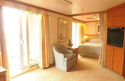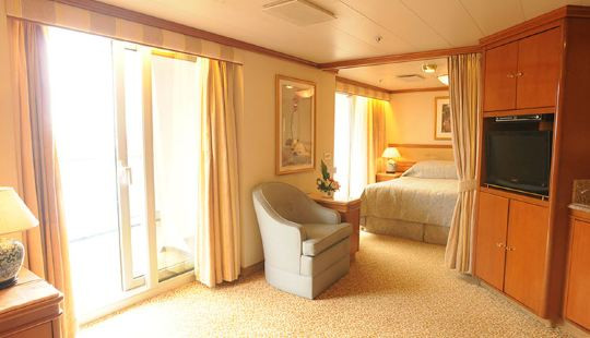 ·设施:位于甲板后段;落地式滑动玻璃门,客舱内有两张单人床,可转换成一张大号床,衣柜的空间大,带淋浴的私人浴室,有抽屉的办公桌。每个客舱有专属的电视,恒温控制空调,冰箱,个人保险箱,24小...